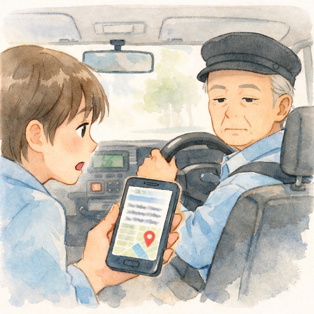 タクシーを呼んでもらいましたが、紹介先の病院名もうまく言えず、スマホのメモ帳に打ち込んで運転手さんに見せました。